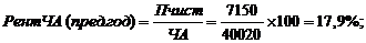 18. Используя данные таблицы 16, рассчитаем влияние рентабельности чистых активов за отчетный год по сравнению с предыдущим годом. Рассчитаем рентабельность чистых активов:
