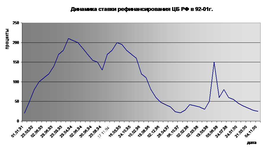 Влияние ставки рефинансирования Банка России на экономику. Динамика ставки рефинансирования и процентной ставки по кредитам