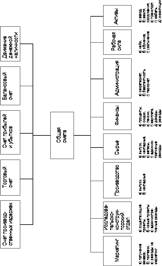 Весь процесс бюджетного контроля состоит из множества доходных статей и смет, составленных по функциональному признаку, плюс общая контрольная смета, которая все это объединяет. Взаимосвязь между этими элементами отражена на рис. 1.