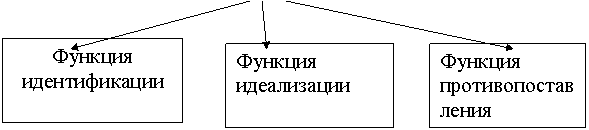Существует ещё одна функция имиджа, которая обязательно должна учитываться, это идеализация. В этом случае имидж пытается выдать желаемое за действительное. И в том, и в другом случае имидж имеет функцию противопоставления, поскольку он строится системно, исходя из уже имеющихся иных имиджей. Злодей виден только на фоне доброго человека. Только так будут видны его качества, только на контрасте. Суммарно три вышеотмеченные функции имиджа можно изобразить следующим образом: