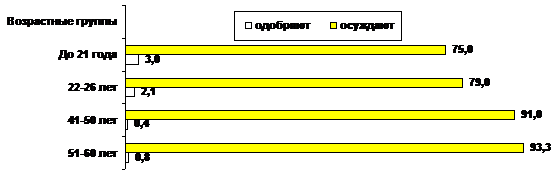 Доля представителей различных возрастных групп населения, осуждающих или одобряющих проявления фашизма в среде российской молодежи, в %