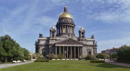 Последние выдающиеся памятники стиля ампир были созданы О.Монферраном. Исаакиевский собор, завершивший ансамбль центральных площадей, стал господствующей, самой значительной доминантой в силуэте города. В трактате его фасадов, и особенно интерьера, проступили черты тяжеловесной помпезности и эклектичности, свидетельствовавшие о закате классицизма и поисках иной, более декоративно насыщенной и стилистически разнообразной архитектурно-художественной системы.