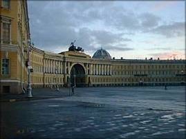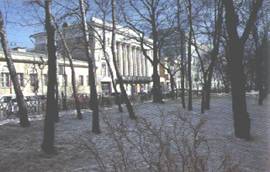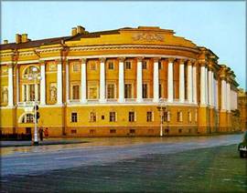Возведённые К.И.Росси здания Главного штаба с его триумфальной аркой, Сената и Синода, объединённые эффектной аркой, закрепили за Дворцовой и Сенатской пл. (ныне пл.Дебристов) первенствующее значение в облике центра города. Самое крупное творение архитектора - ансамбль Александринского театра, включающий две площади (ныне Островского и Ломоносова) и улицу (ныне ул.Зодчего России). |