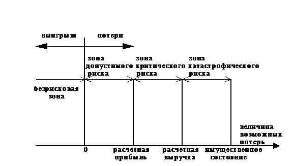 Рассмотрим некоторые из главных показателей риска. С этой целью сначала выделим определенные области или зоны риска в зависимости от величины потерь (рис. 1).