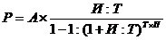 Для расчета суммы арендных платежей по финансовому лизингу используется формула аннуитетов (ежегодных платежей по конкретному займу), которая выражает взаимосвязанное действие всех условий лизингового соглашения на величину арендных платежей; суммы и срока контракта, уровня лизингового процента, периодичности платежей. Эта формула имеет следующий вид: