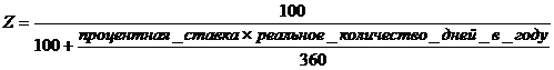 Существуют различные формулы расчета дисконта. Одна из них учитывает дисконтирующий фактор Z, определяемый следующим образом: