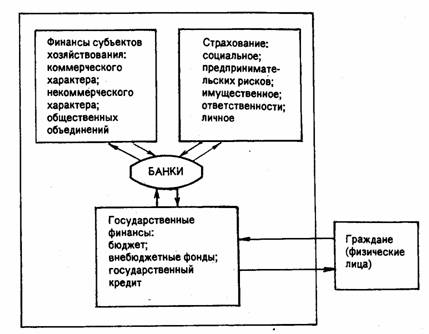 В общей совокупности финансовых отношений выделяют три крупные взаимосвязанные сферы: финансы хозяйствующих субъектов (предприятия, организации, учреждения), страхование, государственные финансы. В зависимости от характера деятельности субъектов внутри каждой из этих сфер можно выделить различные звенья. Каждое звено выполняет свои задачи, имеет собственную организационную структуру финансового аппарата, однако в совокупности они образуют финансовую систему государства (рис. 1.1).
