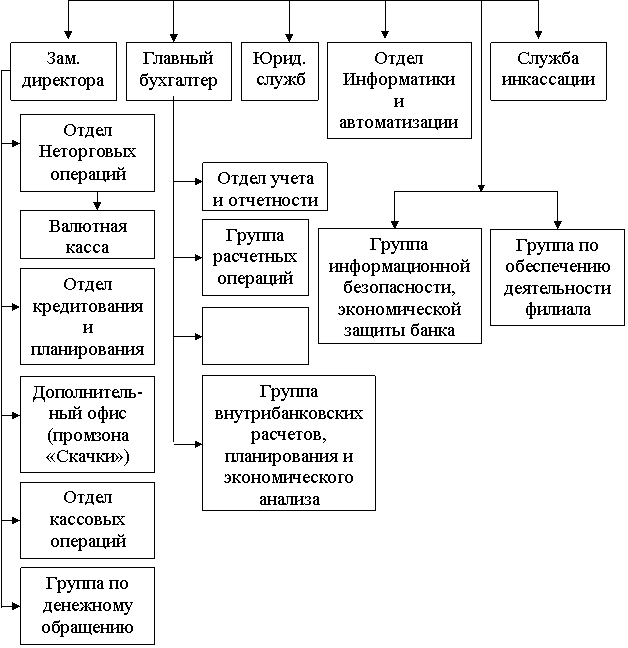 Организационная структура Филиала формируется им самостоятельно на базе разработанных Правлением Банка типовых структур.