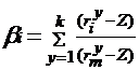 В выражении (2.11) используются средние величины ri, и rm Из теории статистики известно, что при расчете средних величин происходит элиминирование случайных факторов, воздействующих на осредняемый признак. Следовательно, в формуле (2.11) устранено влияние несистематического риска. Поэтому для более точного вычисления доходности i-той акции и портфеля в целом целесообразно использовать выражение, подученное в результате преобразования (2.12). Ниже приводится это выражение