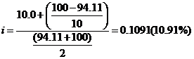 По данным примера 5.5 рассчитаем ставку помещения для случая продажи облигации с дисконтом:
