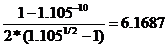 N= 5.0; R = 5*0.09 = 0.45 V10 = (1 + 0.105)-10=0.3684
