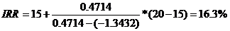 Уточним величину ставки, для чего примем значения процентных ставок, равное i1 = 16 %, i2 = 17 % и произведем новый расчет.