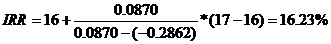 I RK. = 16,25 % является верхним пределом процентной ставки, по которой уирма помет окупить кредит для финансирования инвестиционного проекта. Для получения прибыли фирма должна брать кредит по ставки менее 16,25 %.