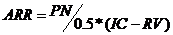 Суть метода заключается в том, что делится величина среднегодовой прибыли (РN) на среднюю величину инвестиции. Сам коэффициент выражается в процентах. Средняя величина инвестиции находится делением исходной суммы капитальных вложении на два, если предполагается, что по истечении срока реализации анализируемого проекта все капитальные затраты будут списаны, если же допускается наличие остаточной или ликвидационной стоимости (RV), то ее величина долина быть исключена.