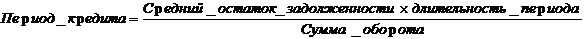 Средний период предоставления кредита может быть исчислен по формуле: