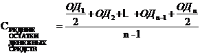 Для расчета средних остатков денежных средств привлекаются внутренние учетные данные (ОДn - остатки на начало n-го месяца) и формула: