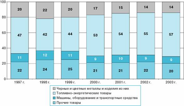 Товарная структура экспорта в 1997—2003 гг. (в % к итогу)