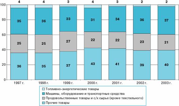 Товарная структура импорта в 1997—2003 гг. (в % к итогу)