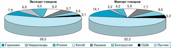 Среди основных потребителей российских товаров наиболее крупными являлись, как и годом ранее, Германия, Нидерланды, Италия, Китай, Украина и Белоруссия.