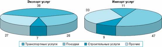 Структура экспорта и импорта услуг в 2003 году (в % к итогу)