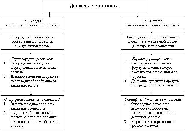 Реальное движение денежных средств происходит на второй и третьей стадиях воспроизводственного процесса - в распределении и обмене. Однако характер движения стоимости (в ее денежной форме) на этих стадиях различен, что не позволяет обе их относить к сфере функционирования финансов.