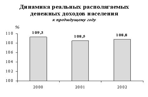 Динамику реальных располагаемых денежных доходов населения в 2000-2002 годах можно наблюдать на рисунке 11: