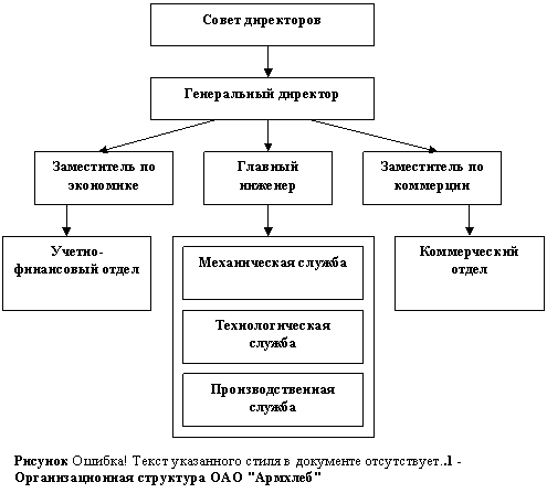 Структура управления ОАО "Армхлеб" приведена на рисунке 2.1.