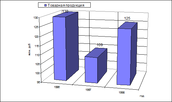 За последнее время все производственные мощности предприятия использовались менее чем на 100 %. Объемы производства в стоимостном выражении наглядно представлены на рисунке 1.