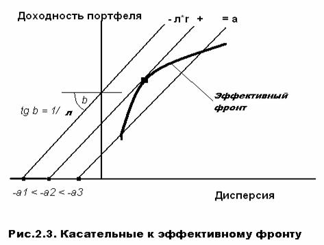 При увеличении а прямая (2.6) приближается к эффективному фронту и при каком-то значении - минимальном! - касается его. Подставив в (2.6) вместо