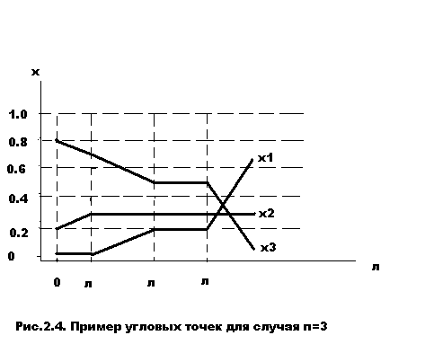 , были названы угловыми (см. Рис.2.4), а соответствующие им портфели - угловыми портфелями. Марковиц установил замечательное свойство угловых портфелей: участок эффективного фронта между смежными угловыми портфелями описывается линейной комбинацией этих портфелей. Иначе, если