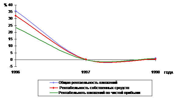 За 1998год показатели общей рентабельности продукции и рентабельность продаж по чистой прибыли увеличились, по сравнению с 1997 годом, хотя за аналогичный период прошлого года наблюдался резкий спад всех показателей рентабельности продукции.