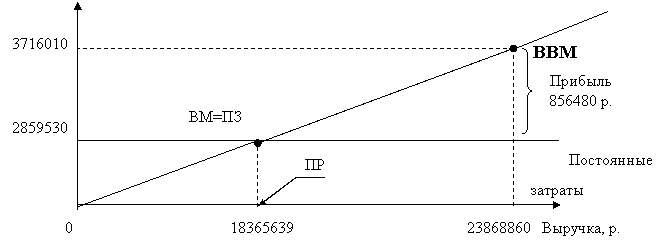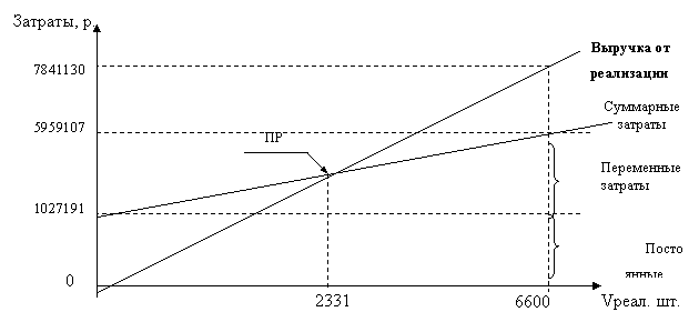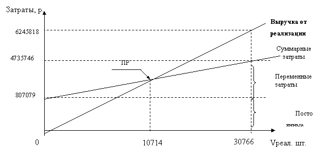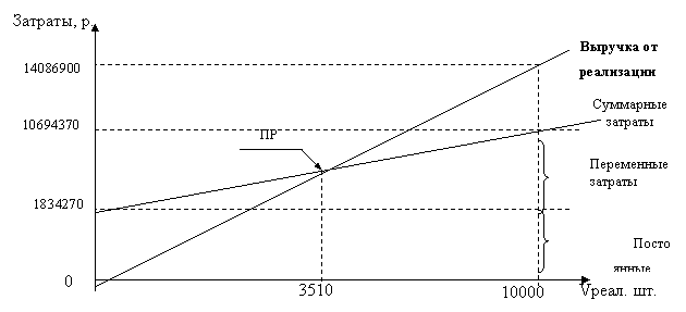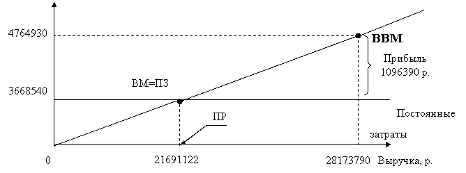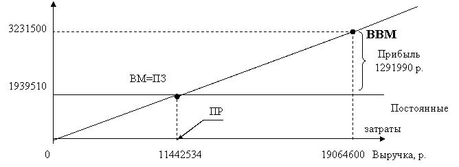 Рис. 3.2.3. Определение порога рентабельности за 1999 год
