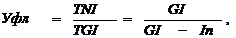 где TNI – темп изменения чистой прибыли, %; TGI – темп изменения валового дохода, %; GI – валовой доход; In – проценты по ссудам и займам. |