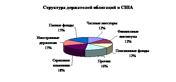 Все большую значимость в США и ряде других стран приобретают так называемые инвестиционные фонды. Идея деятельности инвестиционного фонда состоит в том, что фонд аккумулирует сбережения за счет выпуска своих ценных бумаг и вкладывает их в ценные бумаги, существующие на фондовом рынке. При этом инвестору, вложившему деньги в фонд, принадлежит как бы часть портфеля фонда. Инвестиционные фонды могут вкладывать средства или в конкретные виды ценных бумаг (например, только акции или только облигации), или в различные виды ценных бумаг. Наиболее активны на рынке облигаций специализированные фонды облигаций и сбалансированные фонды, инвестирующие часть активов в акции и часть — в облигации. На денежном рынке роль паевых фондов (так называемых взаимных фондов денежного рынка) в структуре держателей корпоративных долговых бумаг (коммерческих бумаг) еще выше.