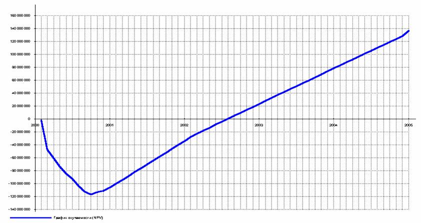 График анализа чувствительности проекта по NPV показал, что при отклонении любого из исследуемых параметров в сторону уменьшения и в сторону увеличения на 20% проект сохраняет свою привлекательность и способность обслужить кредит в установленные данным бизнес-планом сроки.