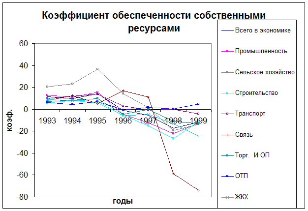 Рис.2.4. Коэффициент обеспеченности собственными ресурсами предприятий и организаций основных отраслей экономики