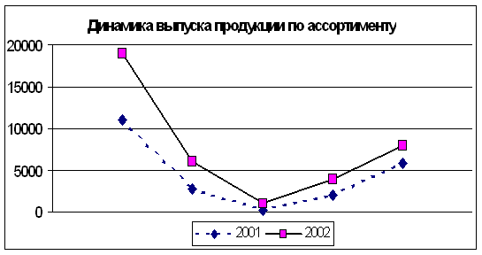 Динамика выпуска продукции по ассортименту данные для анализа взяты из таблицы 2.5.