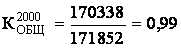 Фондоотдача в 2000 г., исходя из формулы (1.2) равна: