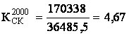 Коэффициент оборачиваемости оборотного капитала в 2000 г., исходя из формулы (1.4), равен: