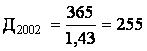 Длительность одного оборота оборотного капитала можно определить, как отношение количества дней в году к коэффициенту оборачиваемости оборотных средств. В 2002 г. длительность одного оборота оборотного капитала была равна: