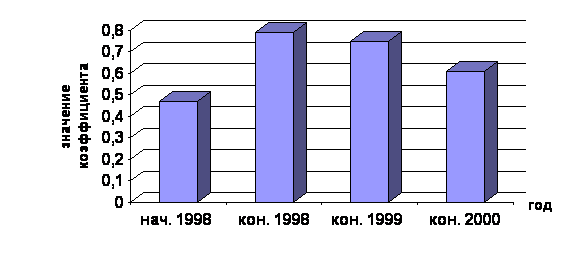 Высокое значение этого показателя говорит о более ликвидной структуре оборотного капитала и, соответственно, более устойчивом финансовом состоянии предприятия.