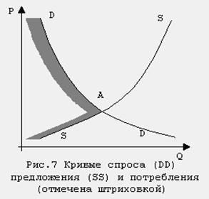 Рассуждая формально, приходим к следующему. При заданных S1 и P1, удовлетворяющих условию S1=S(P1), определяется спрос D1, после чего для объема потребления получаем C1=min(S1,D1).