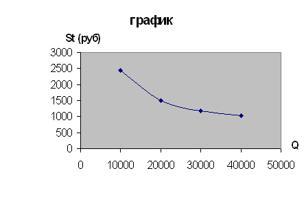 Построим график изменения себестоимости продукции в зависимости от изменения объема выпуска продукции
