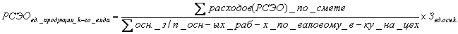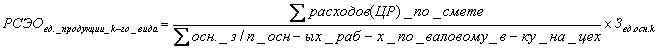 Из данных формул видно, что расходы по содержанию и эксплуатации оборудования (РСЭО) и цеховые расходы (ЦР) включаются в себестоимость единицы продукции каждого вида пропорционально основной заработной плате основных рабочих. Увеличение расходов как по сметам РСЭО и ЦР, так и по заработанной плате ведёт к увеличению ЦР (или РСЭО) на единицу продукции, а значит и себестоимости. В данных формулах первый множитель показывает какой объём затрат РСЭО или ЦР приходится на 1 р. зарплаты основных рабочих. Далее этот объём умножили на всю зарплату осн. рабочих по данному типу изделия и получили ЦР или РСЭО на единицу изделия k-го вида.