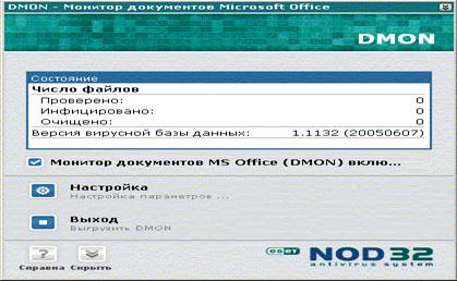 DMON - модуль антивирусной системы NOD32, который служит для проверки документов Microsoft Office и файлов, автоматически загружаемых через Internet Explorer (например элементы Microsoft ActiveX). DMON обеспечивает дополнительный уровень защиты к AMON.