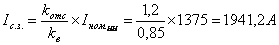 - коэффициент надёжности, учитывающий ошибку в определении токов и необходимый запас, принимаемый