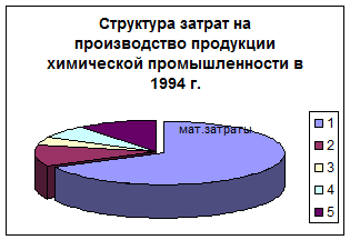 Анализ приведенных данных показывает, что основную часть в затратах на производство продукции химической промышленности составляют материальные затраты, что обусловлено особенностями технологии и позволяют сделать вывод о том, что производство химической продукции является материалоемким производством.