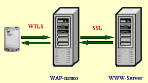 Для защиты WAP-клиента используется протокол WTLS, поддерживаемый мобильными устройствами. Это аналог SSL для "обычного" Интернет. Данные защищаются по протоколу WTLS от мобильного устройства до WAP-шлюза. От WAP-шлюза до Web-сервера используется SSL. Преобразование WTLS-SSL и SSL-WTLS происходит на WAP-шлюзе и в текущей версии протокола WAP 1.1 данные в момент перекодировки остаются незащищенными. Поэтому существует потенциальная опасность того, что, если злоумышленник получит доступ к WAP-шлюзу, то он может получить доступ и к передаваемым данным. Эта брешь будет устранена в следующих версиях протокола. Сейчас же, для особо требовательных к безопасности случаев, предлагается использовать собственный WAP-шлюз, находящийся за брандмауэром.