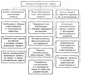 прединвестициопную — от предварительного исследования до окончательного решения о принятии инвестиционного проекта.