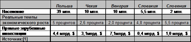 Таблица 1.4. Инвестиции в странах Восточной Европы.